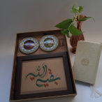 محتویات : 20 گرم هل سبز ، 4 گرم زعفران ، تابلو کالیگرافی